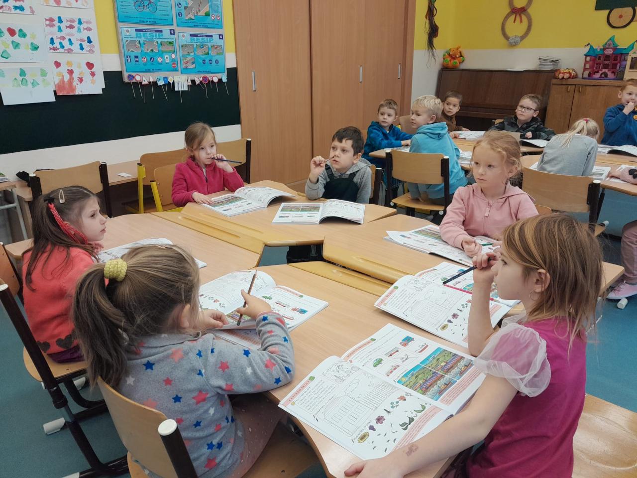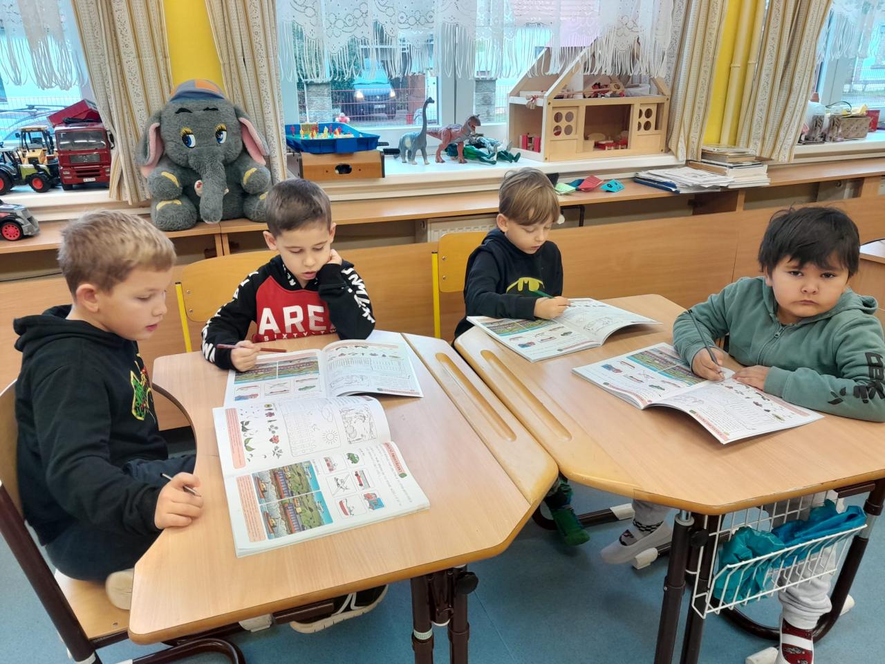 Děti si mohou v počítačové učebně trénovat své dovednosti a znalosti v programu pro předškoláky, v tělocvičně školy hrají pohybové hry a rozvíjejí svojí hrubou motoriku, v družině trénují grafomotoriku a rozumové schopnosti v pracovních sešitech.