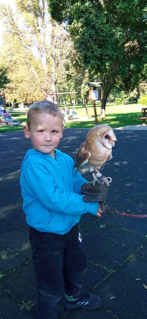 Milá paní chovatelka nás seznámila se sovou pálenou, orlem skalním, sovou sněžnou, poštolkou obecnou atd.