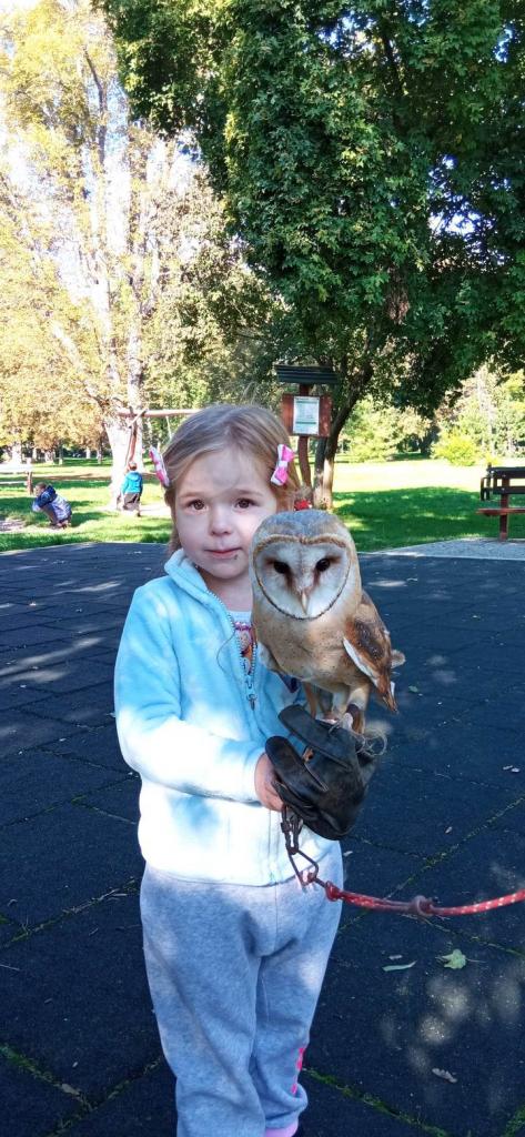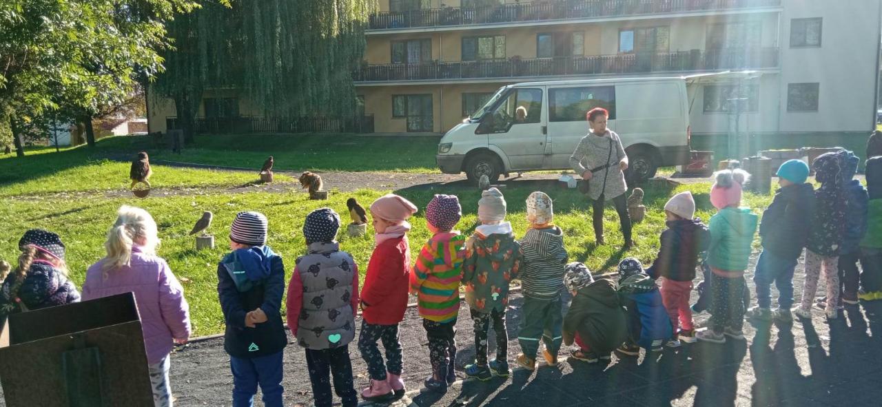 Milá paní chovatelka nás seznámila se sovou pálenou, orlem skalním, sovou sněžnou, poštolkou obecnou atd.