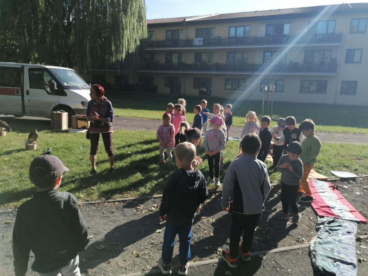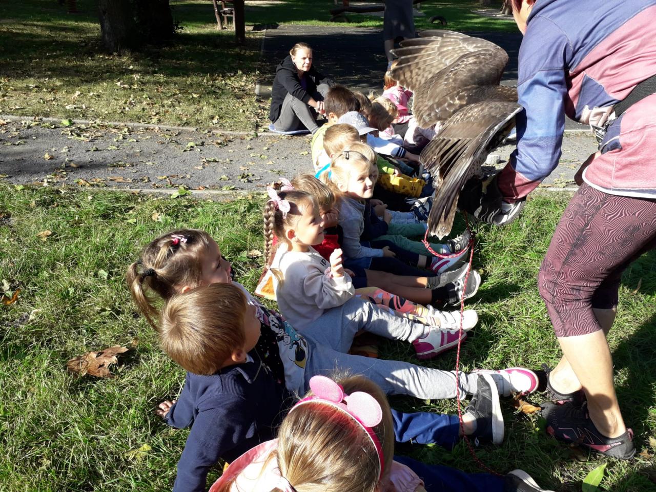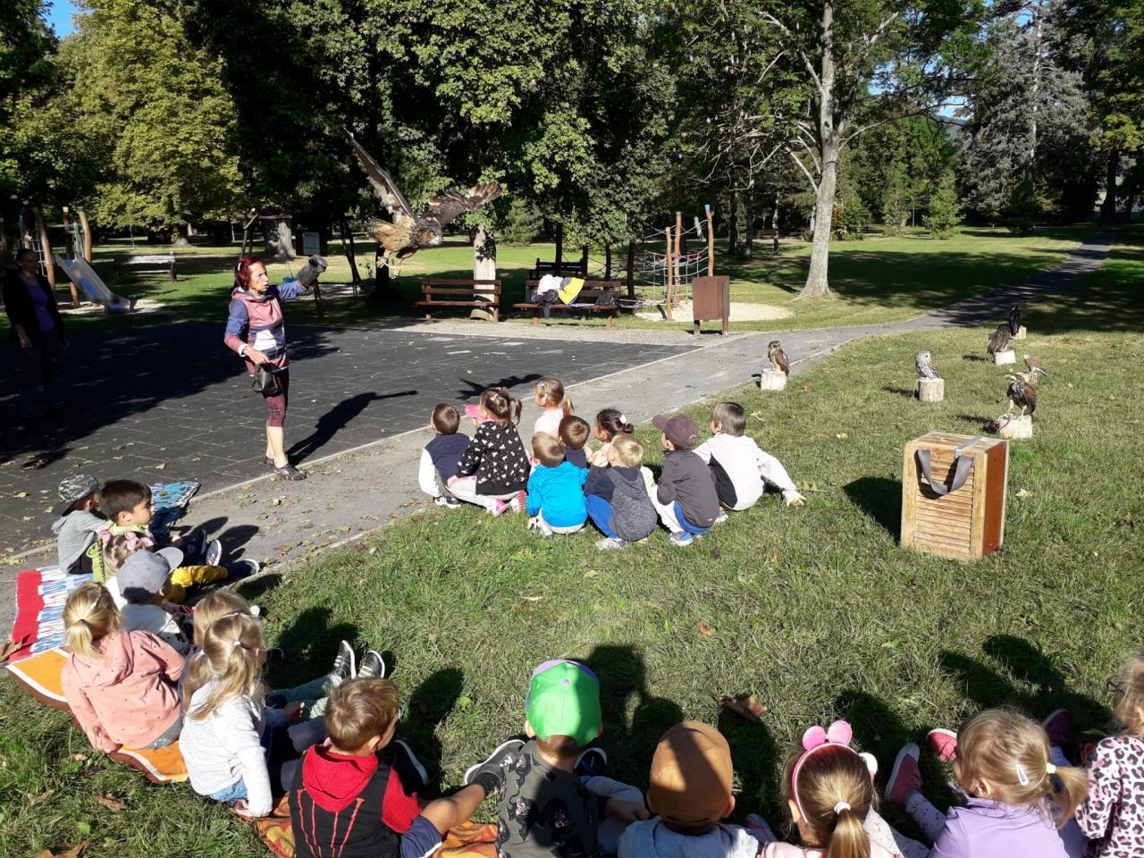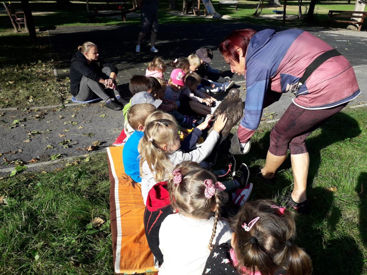 Děti se seznámily s různými druhy ptactva, informace o dravcích byly prokládané pohybovými aktivitami zaměřené na téma ptáci.