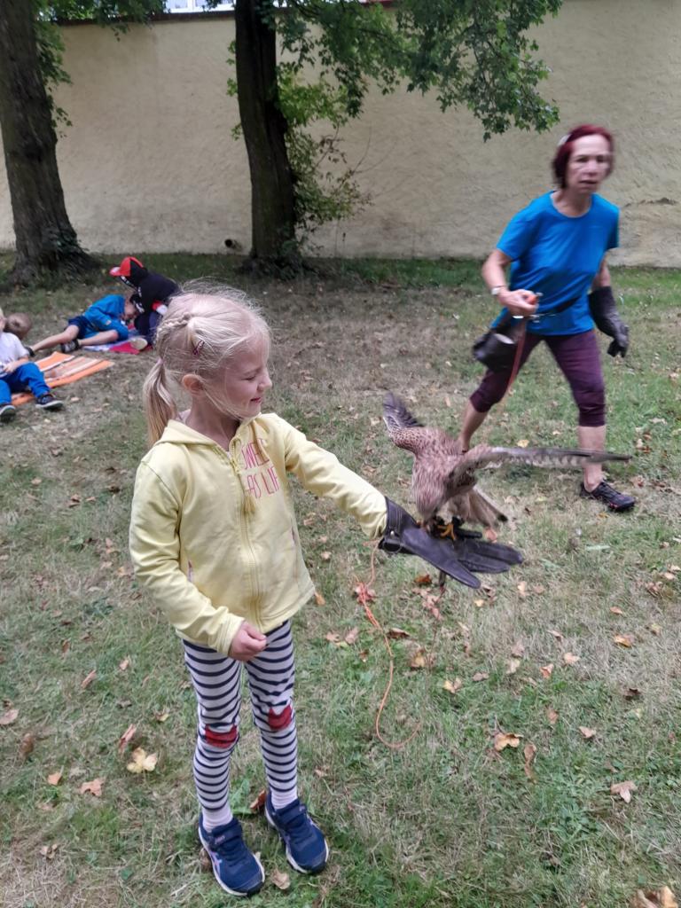 Děti si mohly jednotlivé dravce pohladit a nechyběla ani ukázka letu na zavolání.