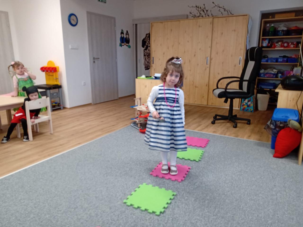 Před svačinou si děti mohly zatancovat na karnevalovém bále a plnily karnevalové úkoly u stolečků.