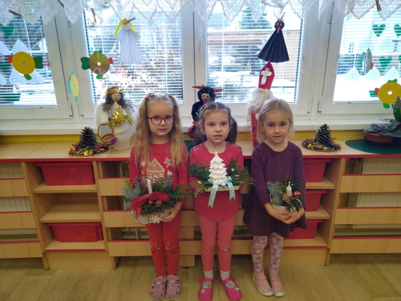 V předvánočním období se děti seznámily s tradicemi a zvyky Vánoc (házení bačkory, zdobení stromečku, pouštění lodiček apod.)