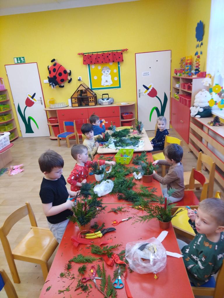 Děti pomáhaly s výrobou vánočních dekorací na vánoční trhy pořádané obcí. Do tvoření na vánoční trhy se mohli také zapojit rodiče a prarodiče dětí. Za tuto spolupráci mockrát děkujeme.