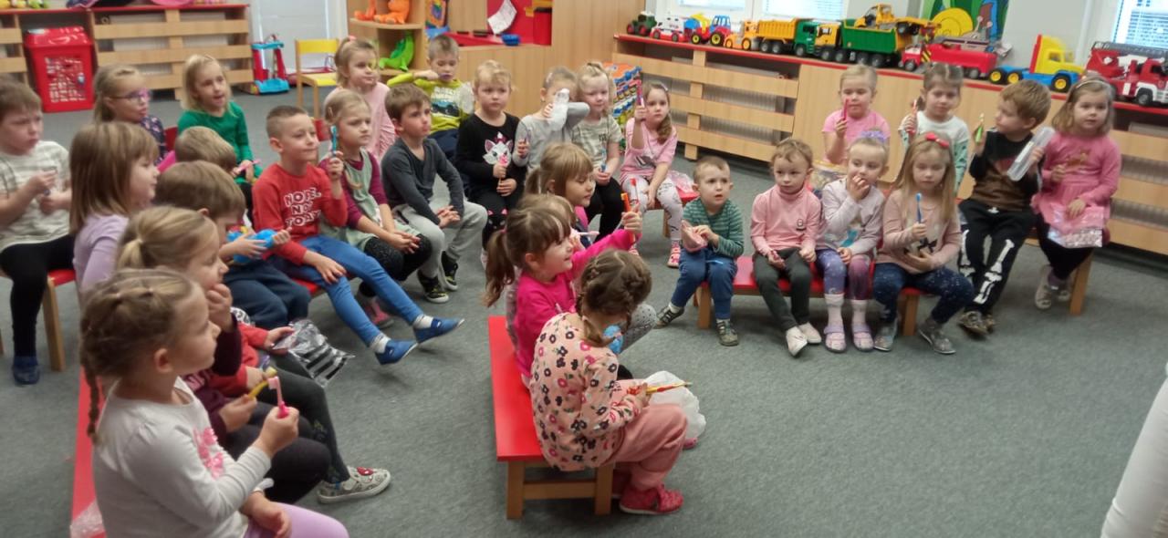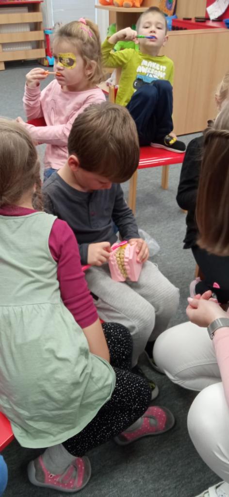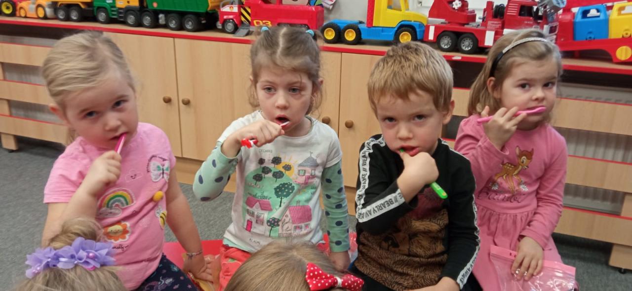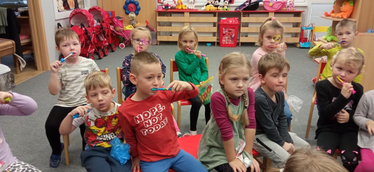 Na začátku programu jsme si s dětmi povídali o tom, proč je péče o zuby tak důležitá. Děti se dozvěděly, jaké funkce zuby plní a jaký mají vliv na naše zdraví. Vysvětlili jsme si, proč je důležité zuby pravidelně čistit a jaké jsou následky zanedbání této péče. Byly jsme potěšeny, jakým způsobem děti naslouchaly a aktivně se zapojovaly do diskuze.