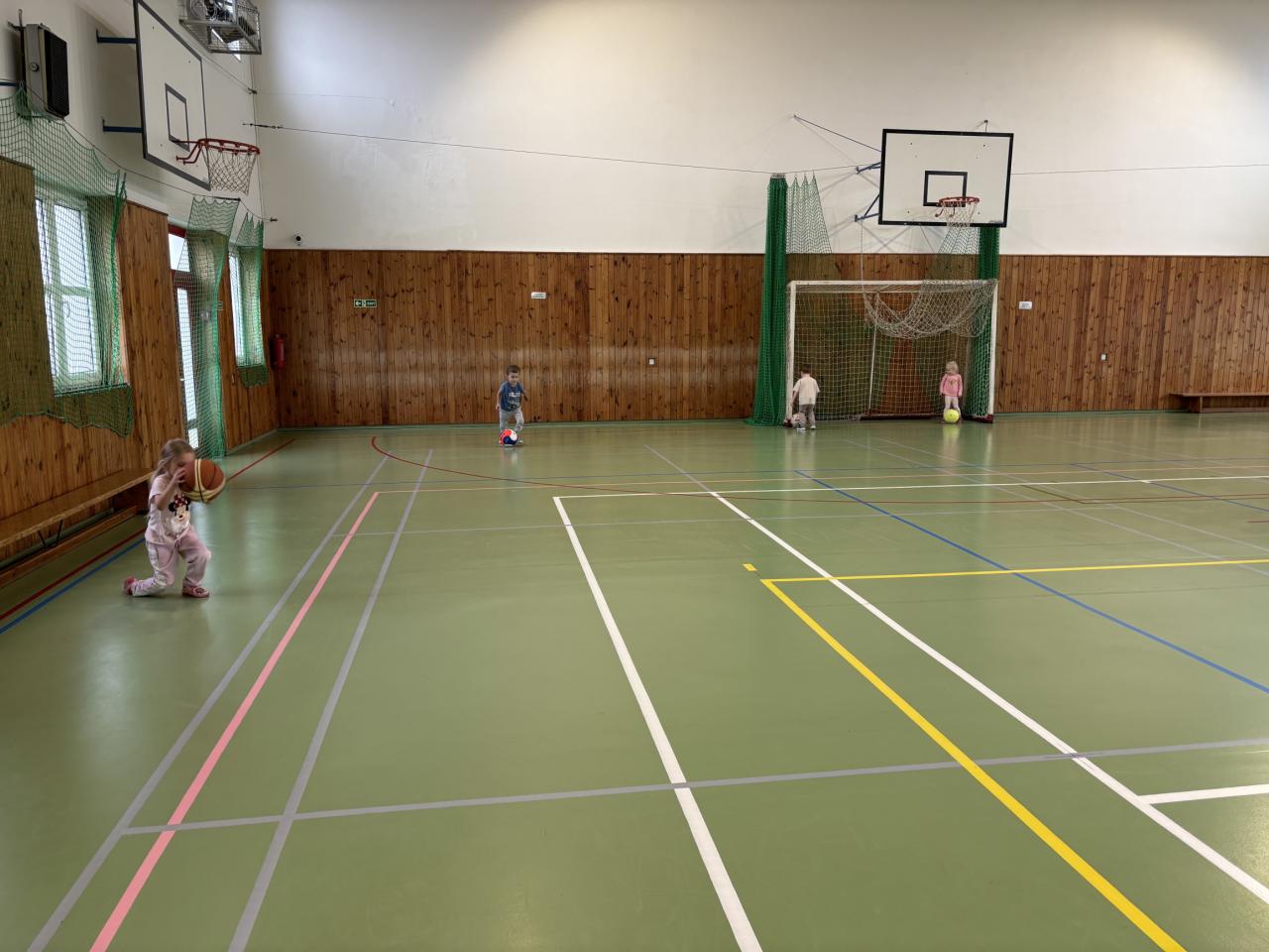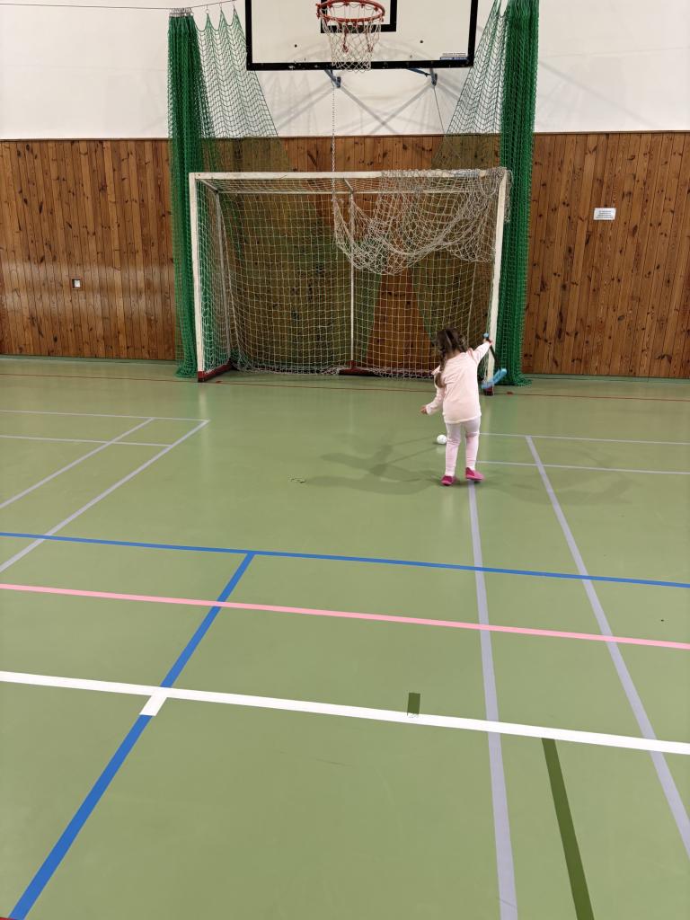 Potom následovaly pohybové hry s míčem. Nechyběly ani ukázky oblíbených sportů – děti si vyzkoušely kopání do branky jako fotbalisté, střelbu florbalovou hokejkou a házení do basketbalového koše. Každý sport si děti mohly zkusit a zjistit, který je baví nejvíc.