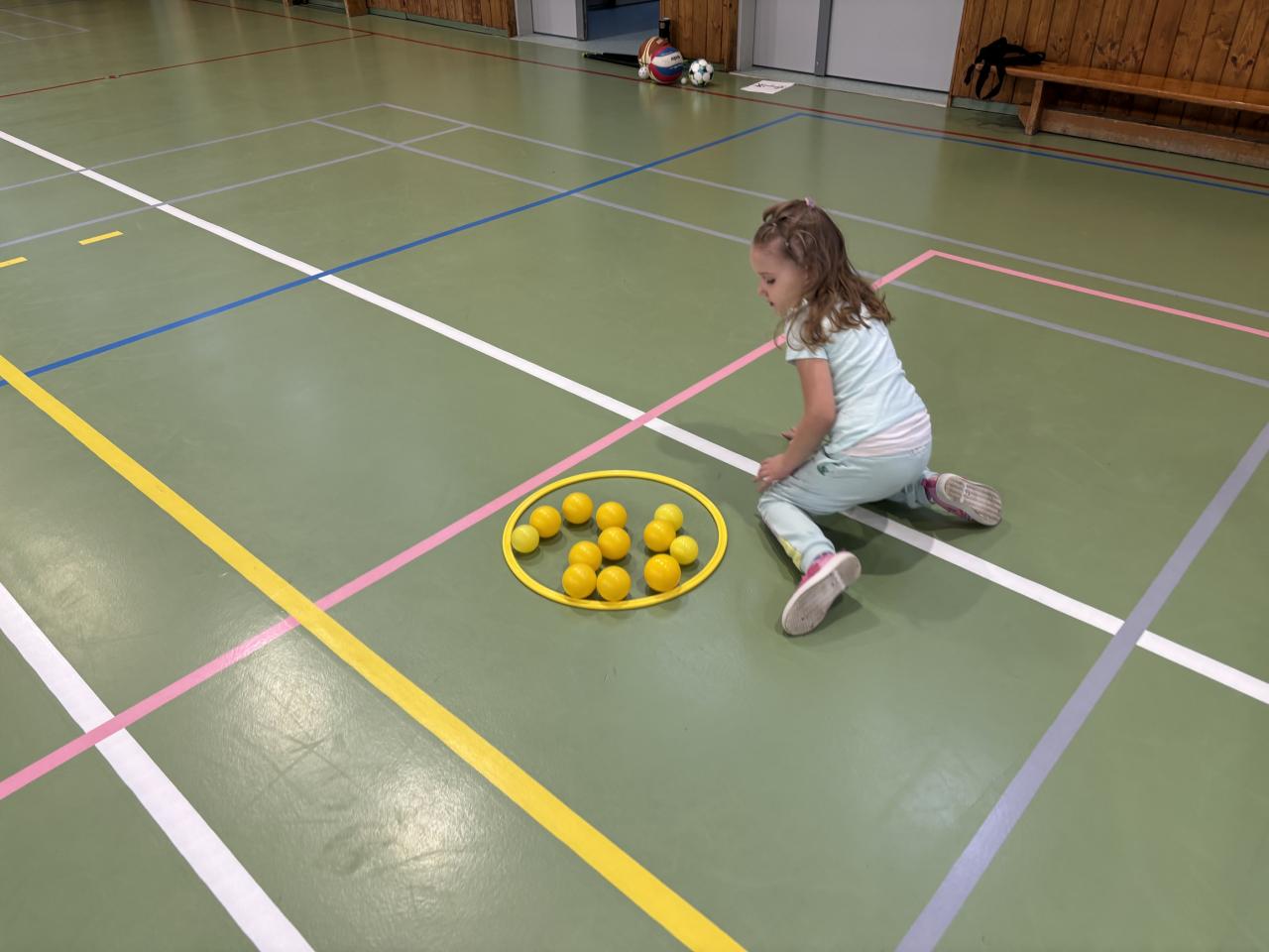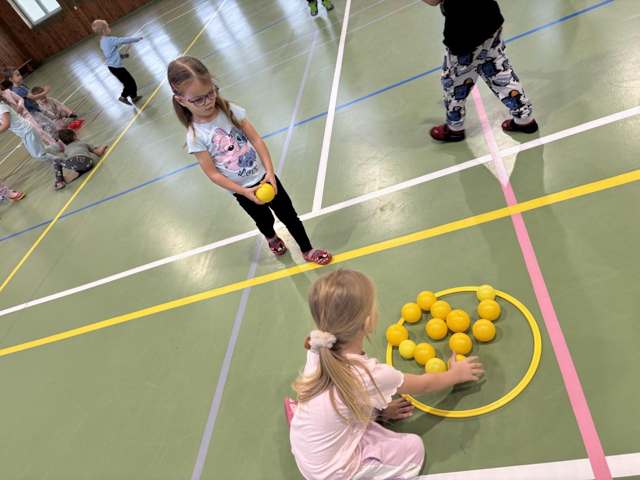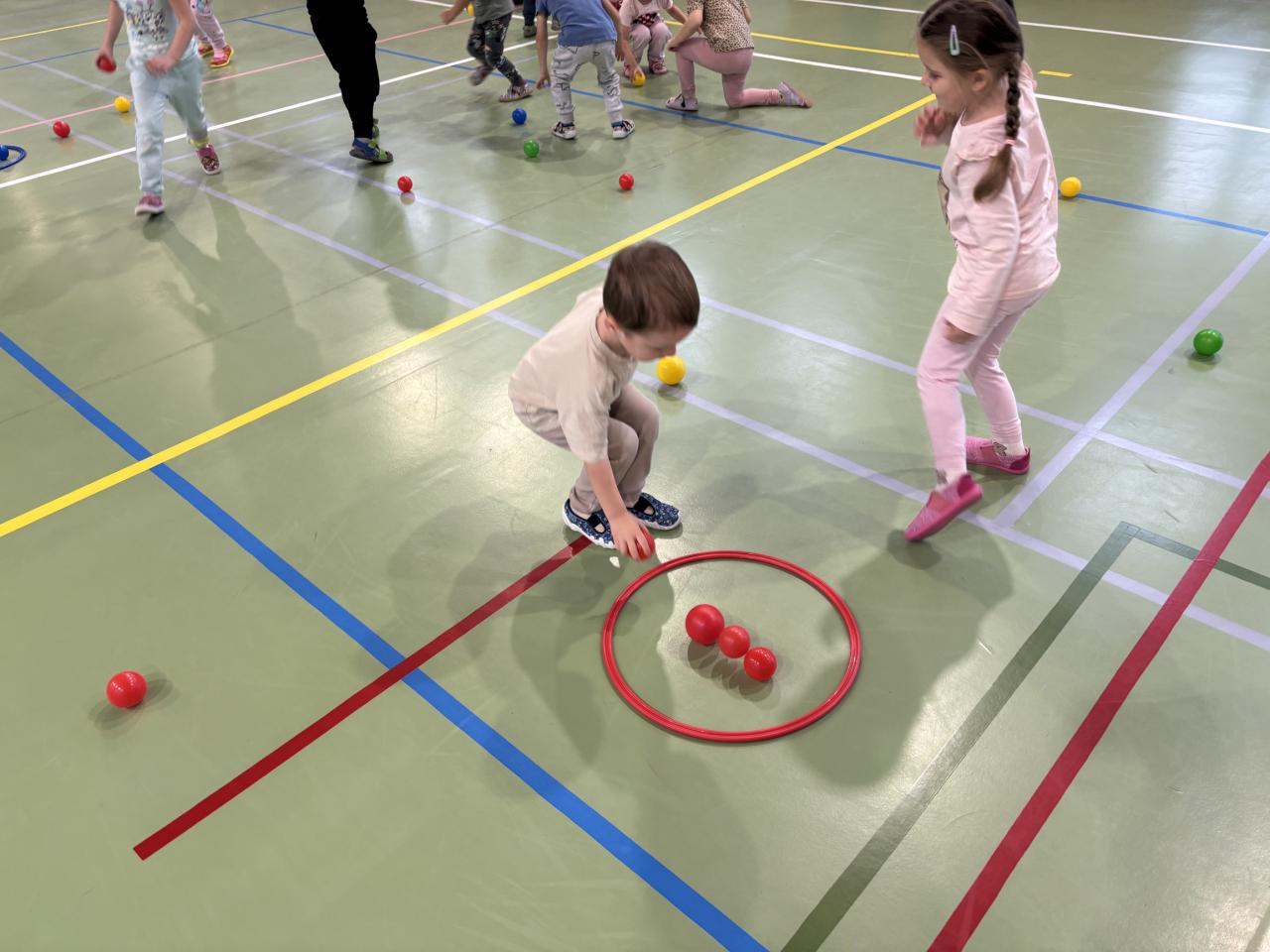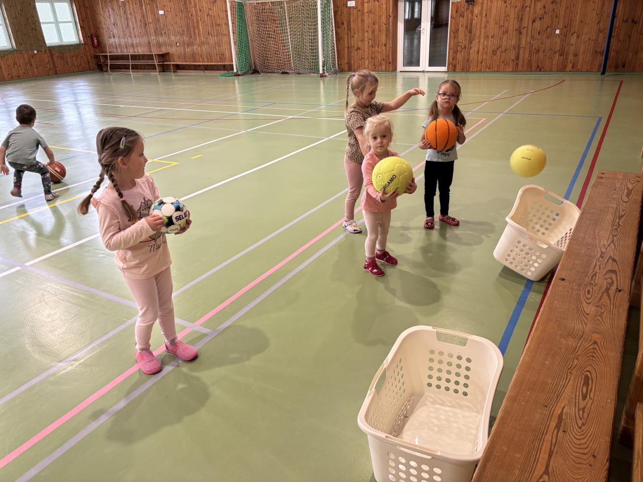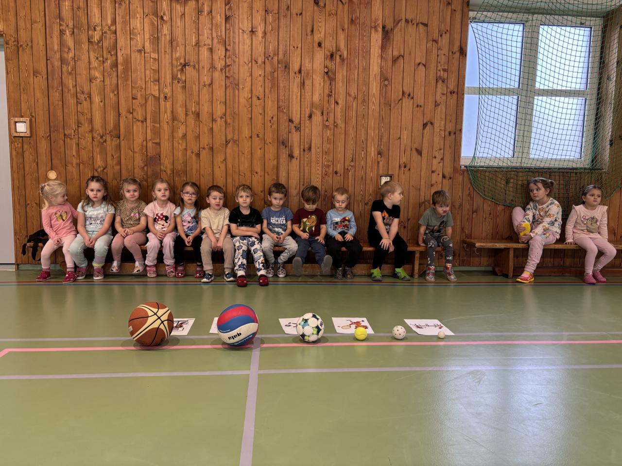Na úvod jsme si s dětmi povídali o tom, jaké sporty se hrají s míčem. Děti se dozvěděly, že každý sport má jiný míč – například ve fotbale se kope do velkého kulatého míče, ve florbalu se hraje s lehkým děrovaným míčkem a v basketbalu se hází do koše s větším oranžovým míčem. Společně jsme si také ukázali, jak se míče liší velikostí, barvou i materiálem.