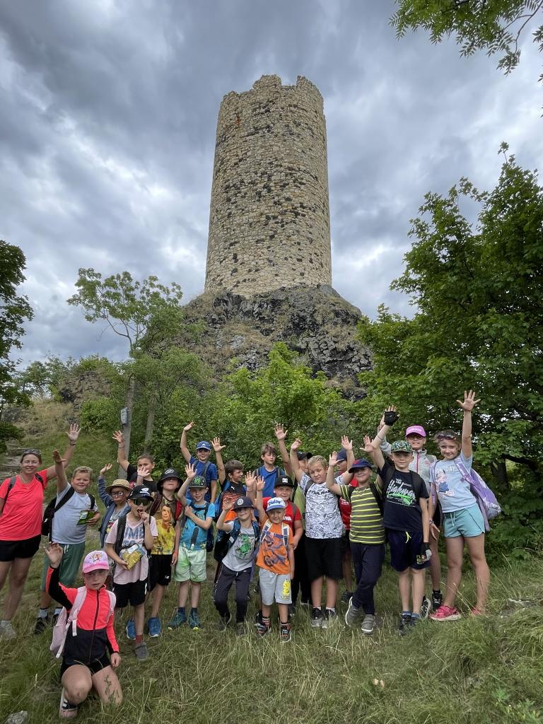 Čtvrtek byl dnem celodenního putování a dobrodružství. Cílem byla majestátní zřícenina hradu Házmburk. Cestou si děti krátily dlouhou chvíli poslechem fascinujících legend. Vedoucí tábora je vtáhly do světa Házmburské saně, pověsti o spící princezně, která prý v noci straší na hradě, a o Klapských katastrofách. Tento den byl plný pohybu, fantazie a historie, která se dětem zapsala do paměti.