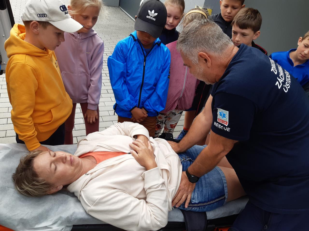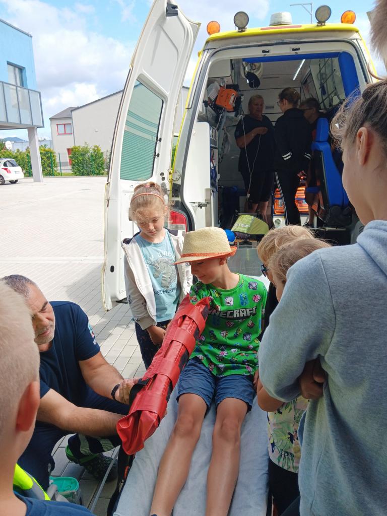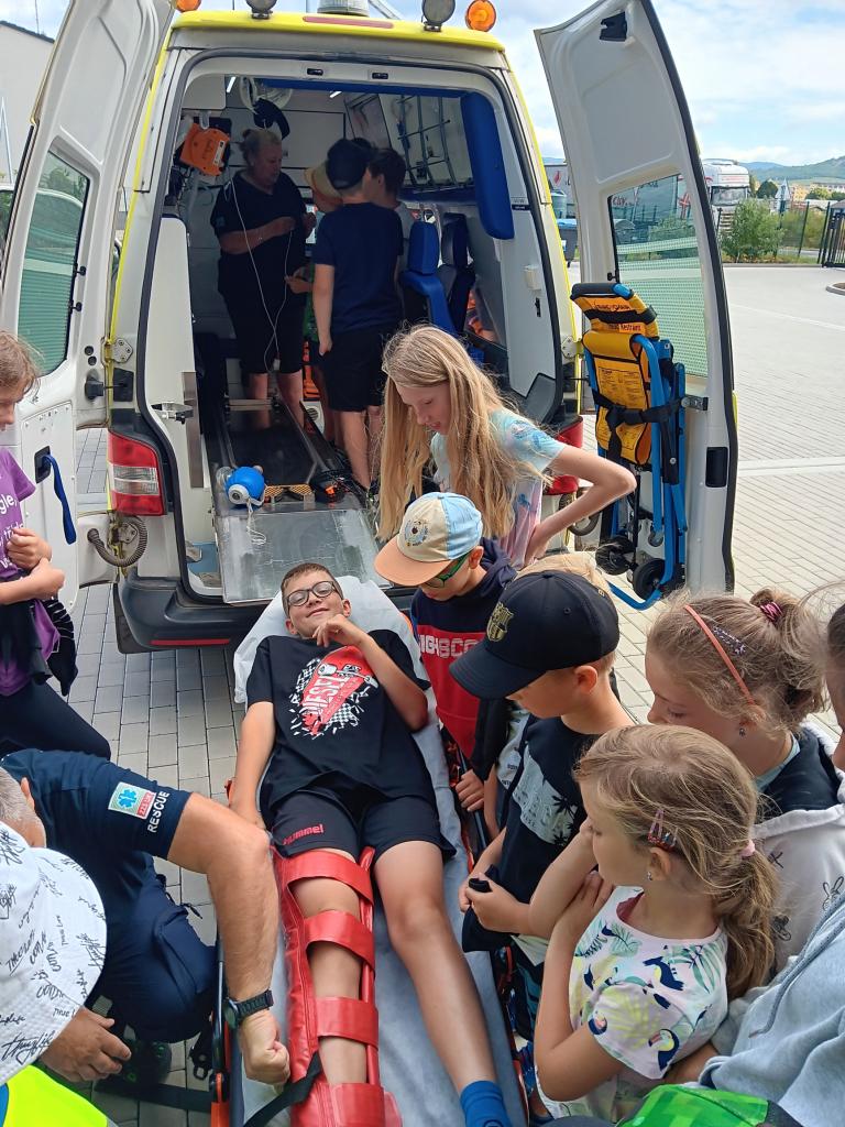 U záchranářů si zaměřili na důležité chování při nálezu osoby v bezvedomí a poskytování první pomoci. Doplnili si znalosti o preventivně ochranných opatřeních, IZS a tísňových linkách. Nakonec si vyzkoušeli fixaci zlomeniny a prolédli si vybavení "sanitky".