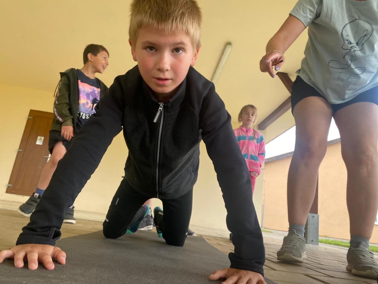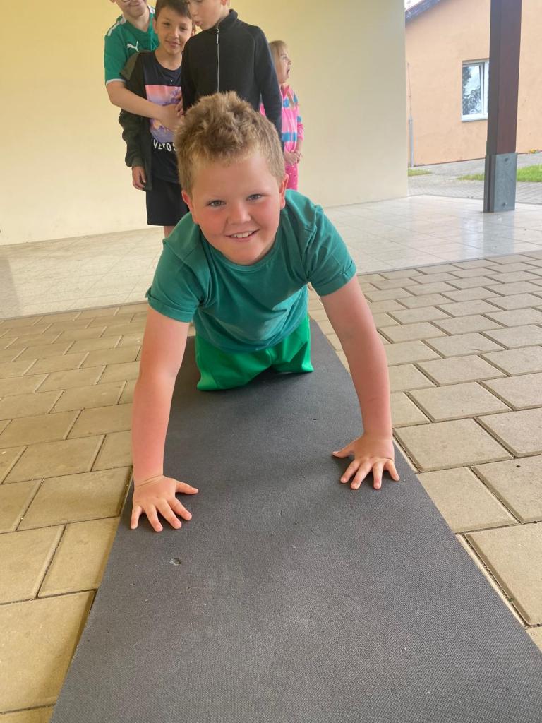 18. 6. se žáci naší školy mezi sebou utkali v deseti disciplínách- např. sedy x lehy, dřepy, skákání přes švihadlo, dribling, sprint, hod...