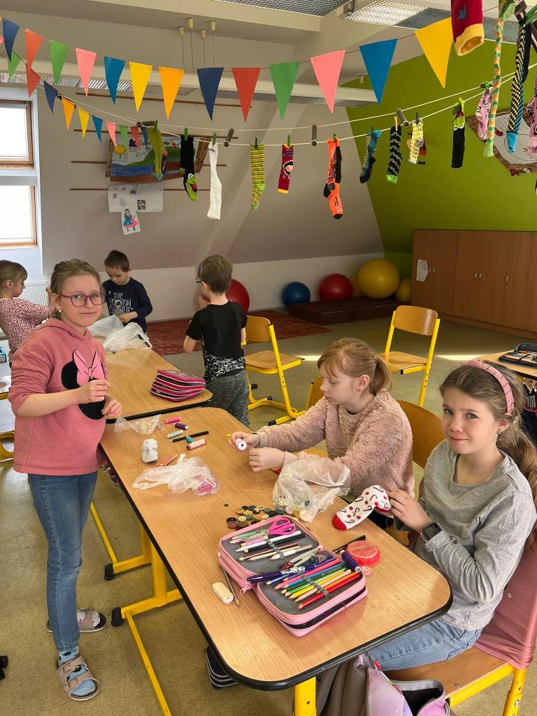 Dnes si žáci 1. třídy udělali ponožkový den na podporu lidí s Dawnovým syndromem. Pěkně si společně popvídali o tomto onemocnění, vyrobili si ponožkové zajíčky a vybarvili si ponožky. Od 3. ročníku se žáci dozvěděli něco navíc o lichožroutech :-)
