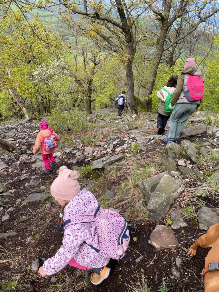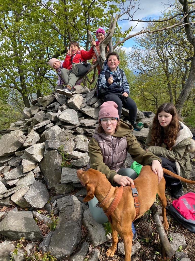 V neděli jsme se společně vydali na výlet na jedno z nezapomenutelných míst Českého středohoří - jeden z jeho dominantních nevulkanických kopců KLETEČNÁ. Začátek cesty byl snadný, avšak čím více jsme postupovali, tím náročnější to bylo. Přeměna cesty z travnaté plochy na kamenitou dráhu byla výzvou, kterou jsme společně překonali. Starší děti poskytovaly pomoc a podporu těm mladším, abychom všichni společně dosáhli vrcholu.
