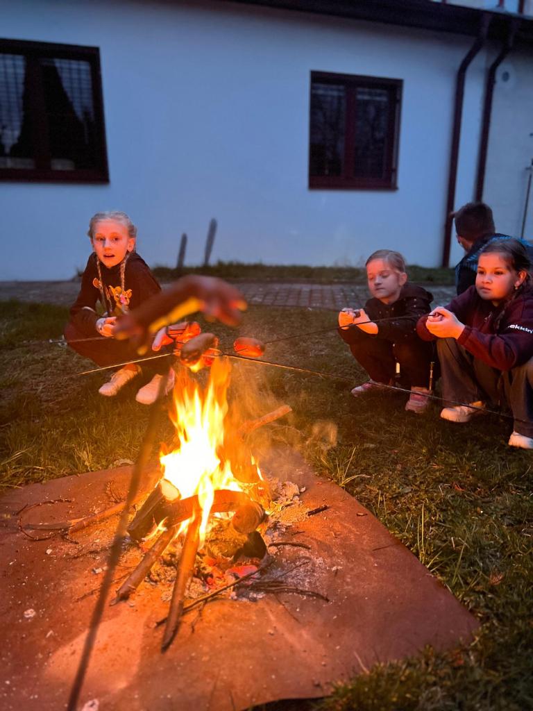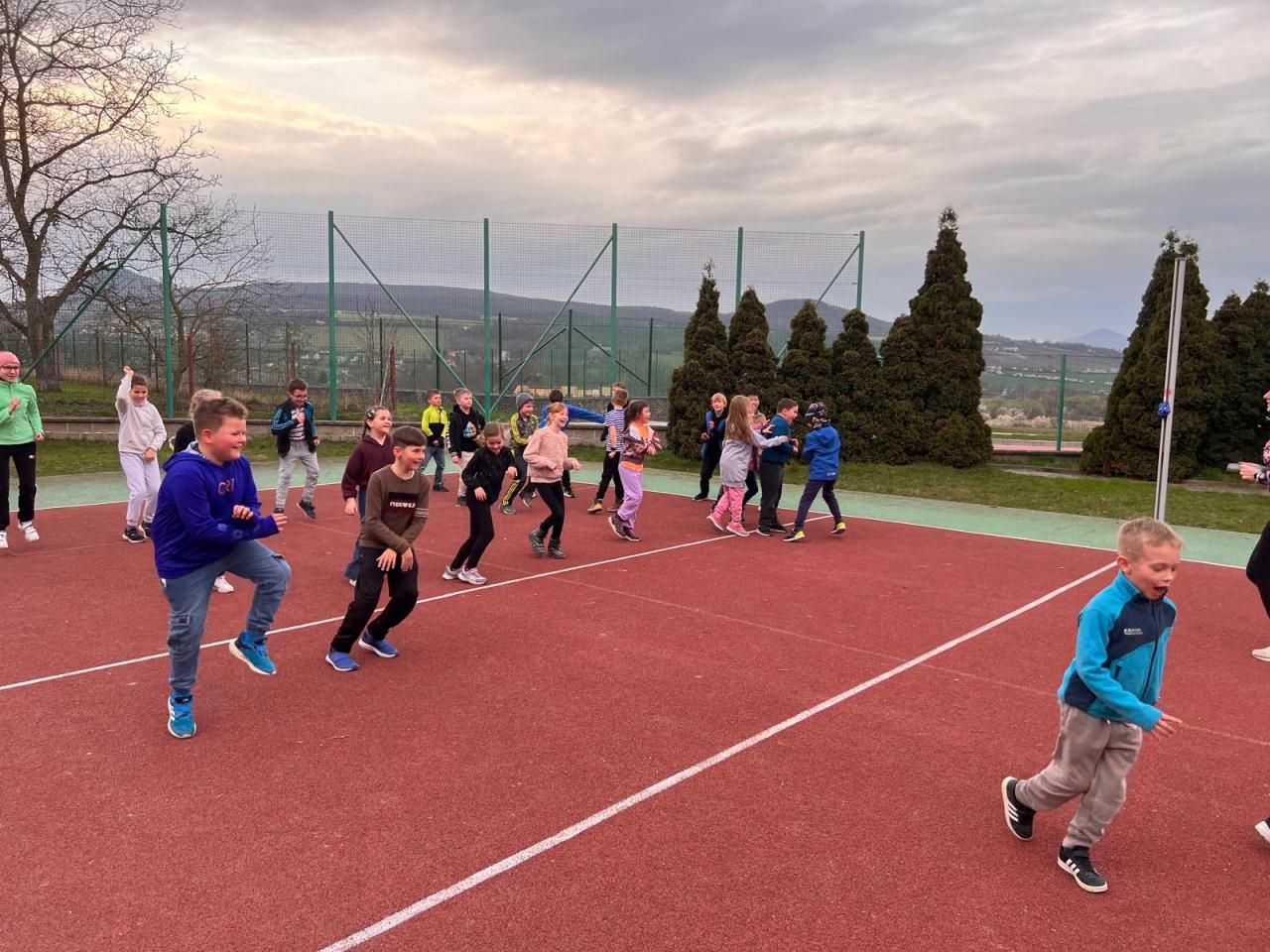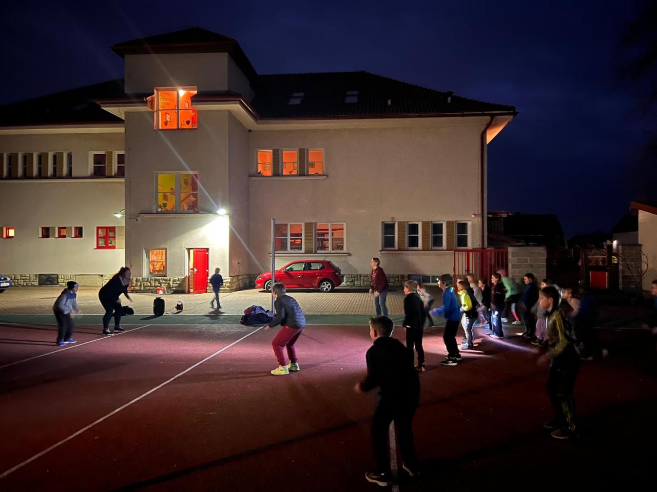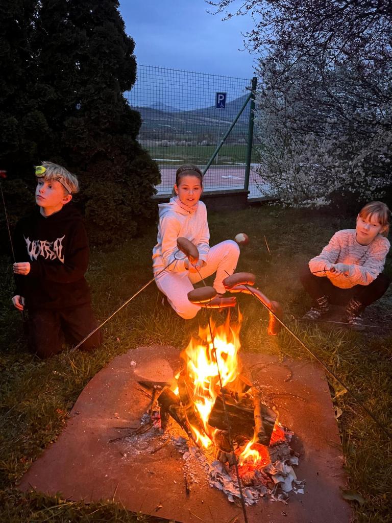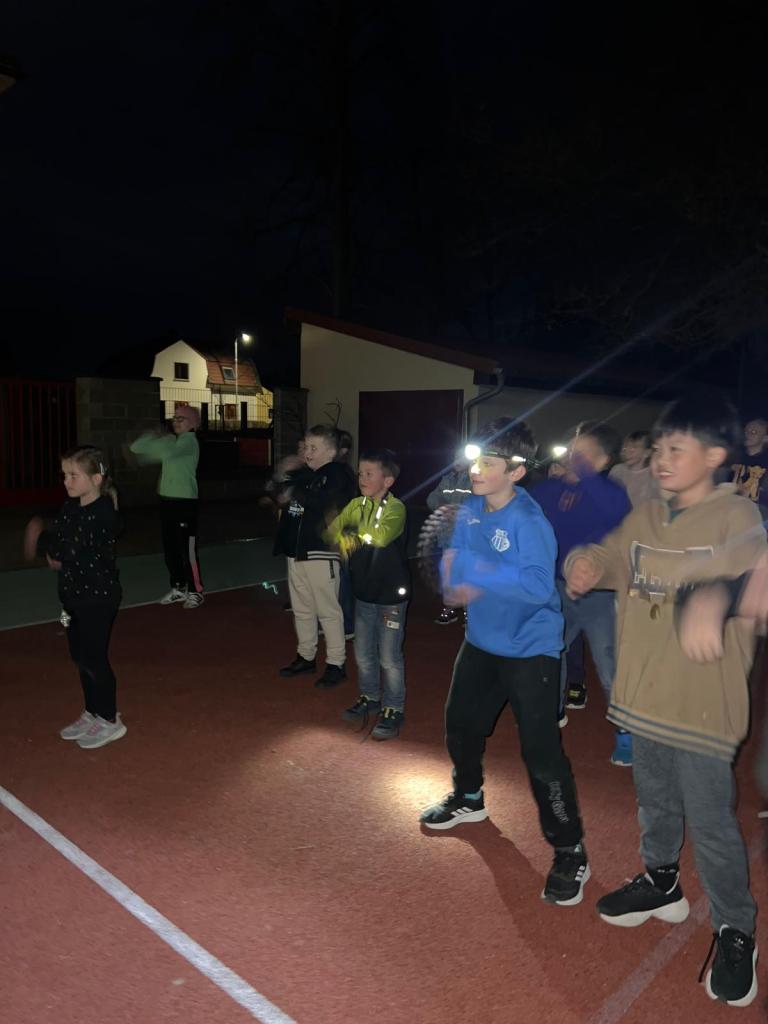 Sraz jsme si určili v 17:30 před hlavním vchodem budovy. Žáci si své věci donesli do druhé třídy, kde později stráví svou společnou noc a následně využili pěkného počasí a přesunuli se do venkovního areálu za školou. Zde bylo připraveno mnoho sportovních řízených aktivit, ale i volná zabava s písničkami na přání. Nechybělo řešení obrázkové křížovky, tvořené z pohádek známého dánského spisovatele H. CH. Andersena. K večeři jsme si připravili vuřty na ohni a s venkovním prostorem jsme se rozloučili společným tancem.