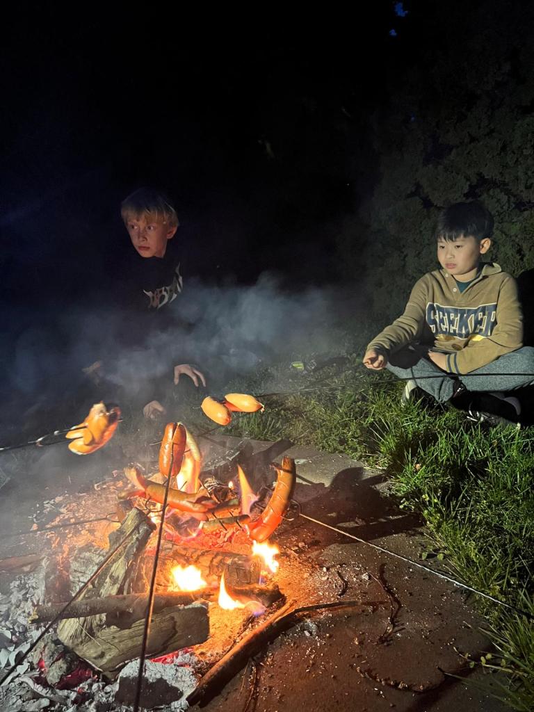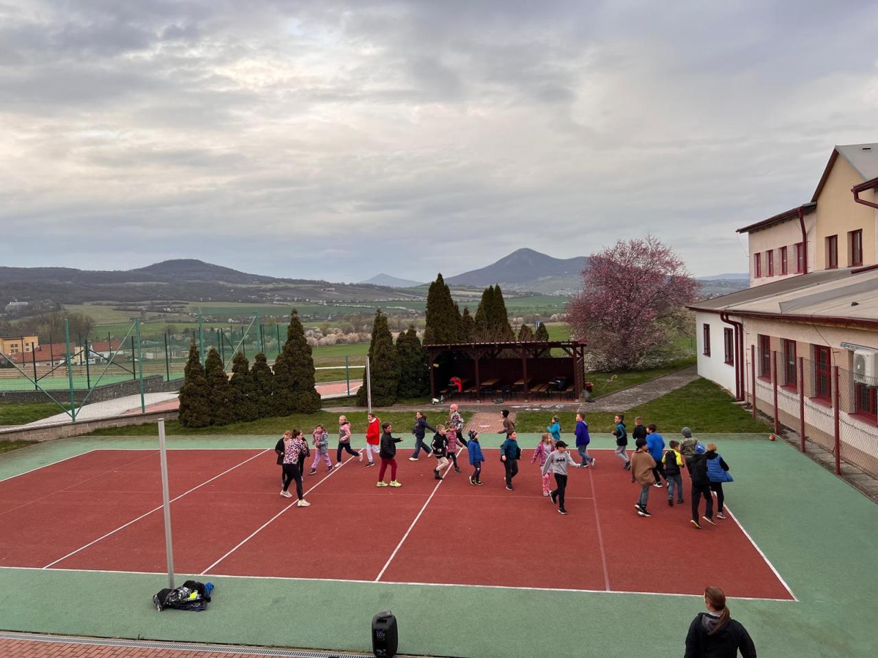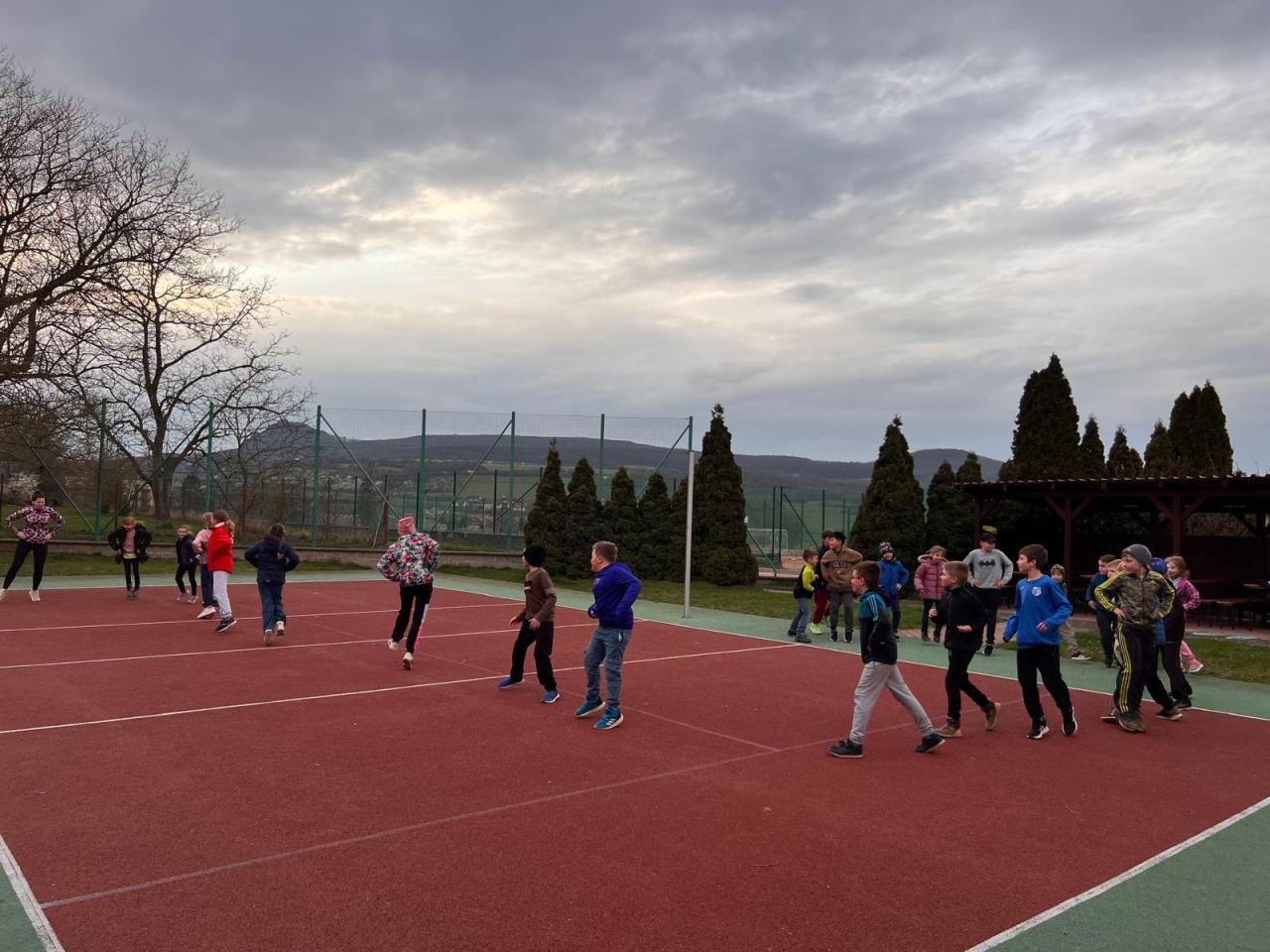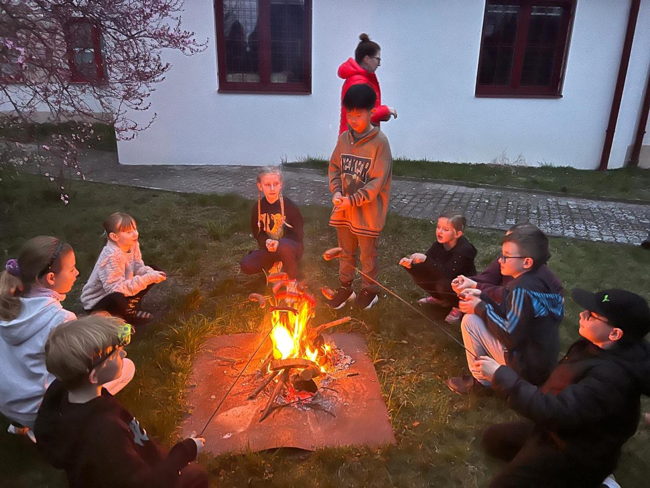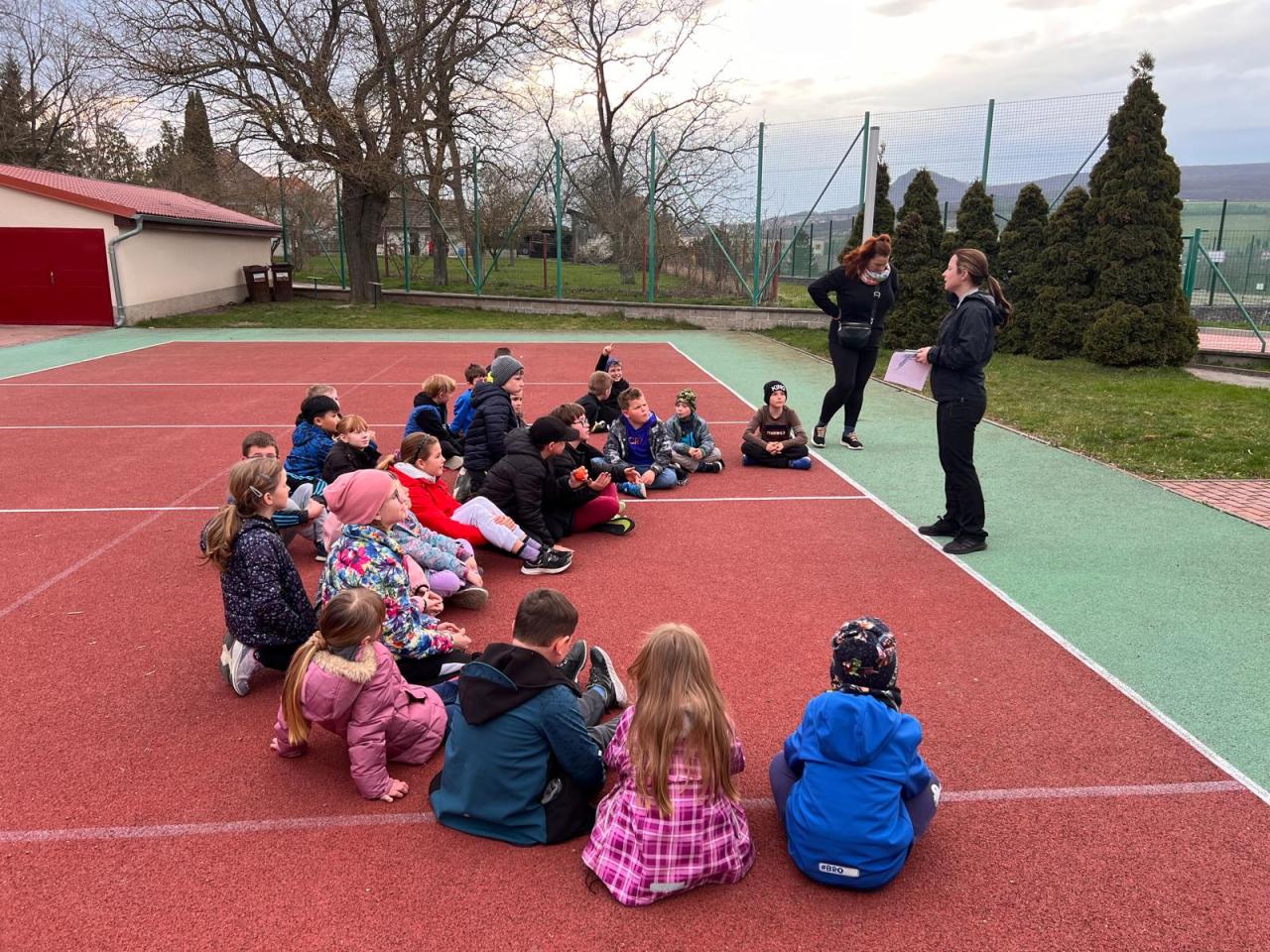 Sraz jsme si určili v 17:30 před hlavním vchodem budovy. Žáci si své věci donesli do druhé třídy, kde později stráví svou společnou noc a následně využili pěkného počasí a přesunuli se do venkovního areálu za školou. Zde bylo připraveno mnoho sportovních řízených aktivit, ale i volná zabava s písničkami na přání. Nechybělo řešení obrázkové křížovky, tvořené z pohádek známého dánského spisovatele H. CH. Andersena. K večeři jsme si připravili vuřty na ohni a s venkovním prostorem jsme se rozloučili společným tancem.