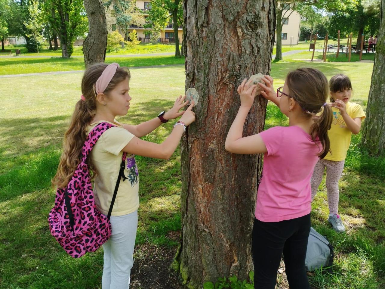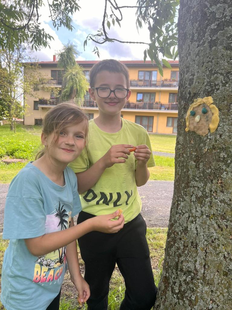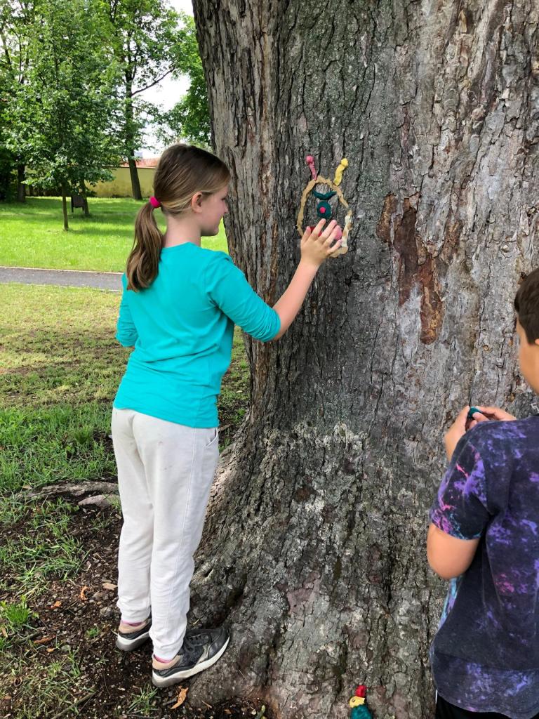 Závěr projektového dne jsme věnovali tvořivé činnosti. Paní učitelka Mgr. Věra Černá pro všechny děti naší školy vyrobila přírodní modelínu různých barev. Děti se s nadšením ujaly tvorby. Jejich kreativní výtvory vdechly stromům nový život, proměnily je ve veselé lesní bytosti a přidaly kouzelnou atmosféru našemu zámeckému parku v Čížkovicích.