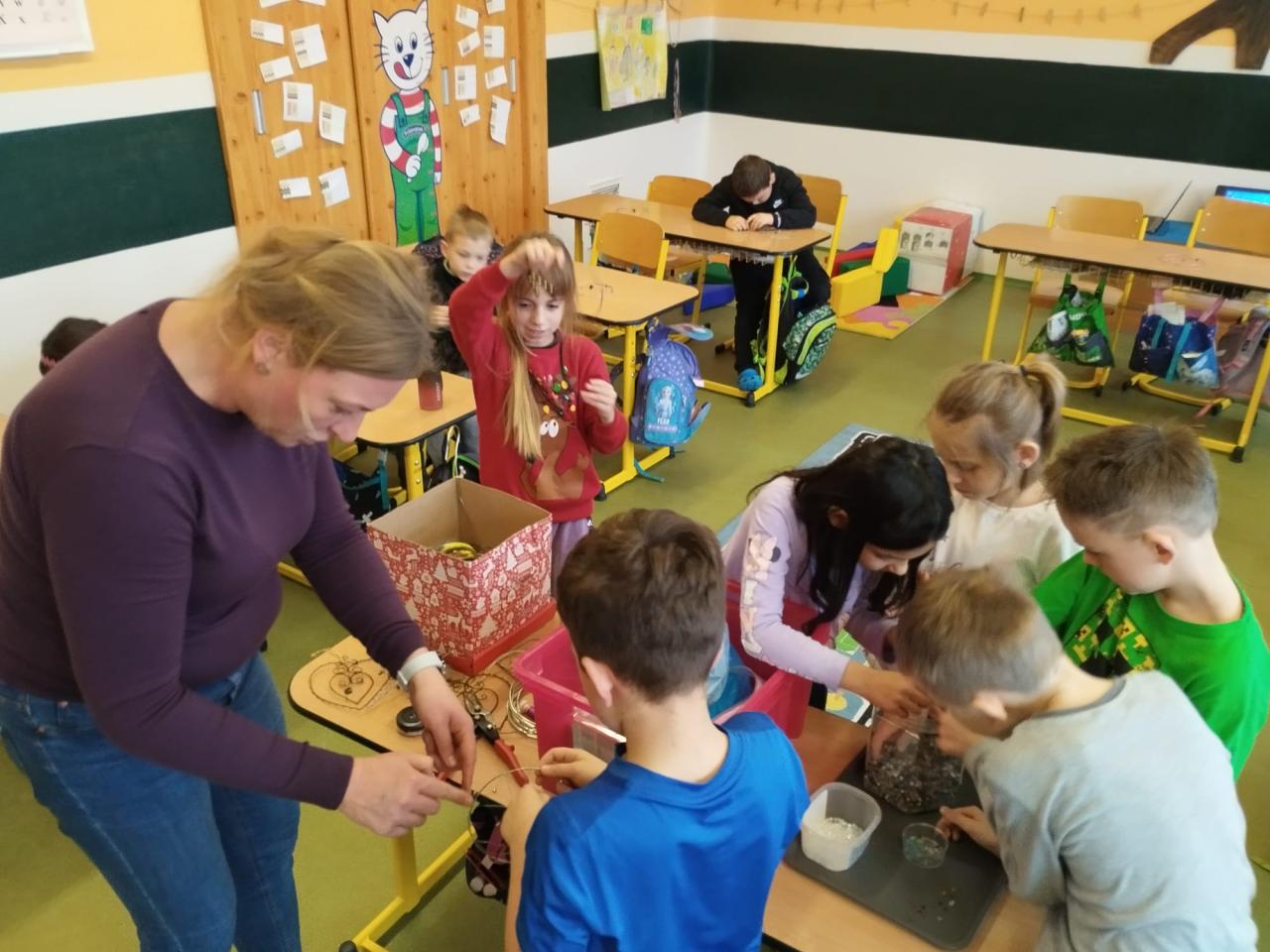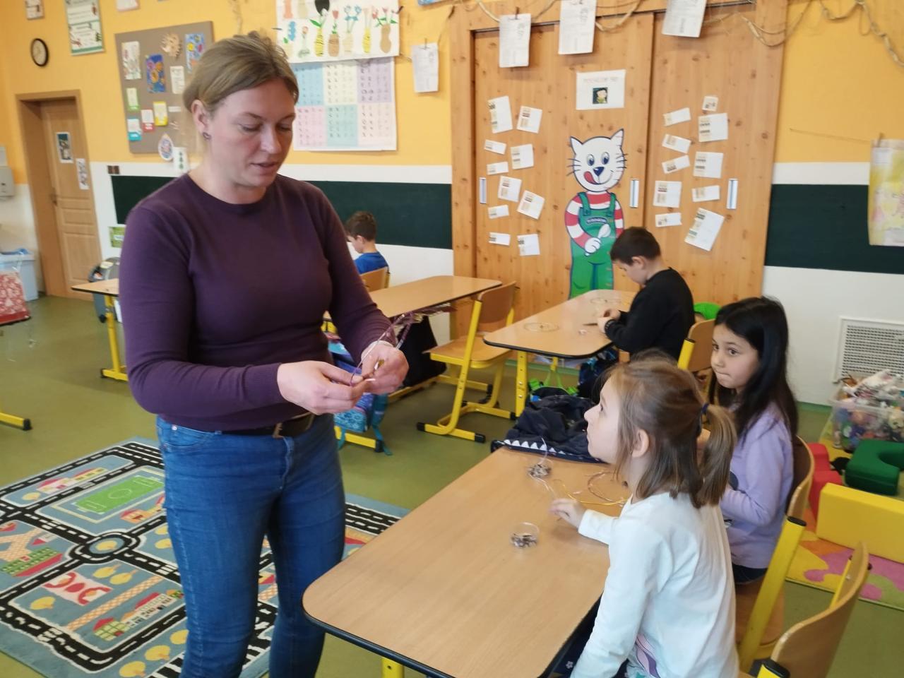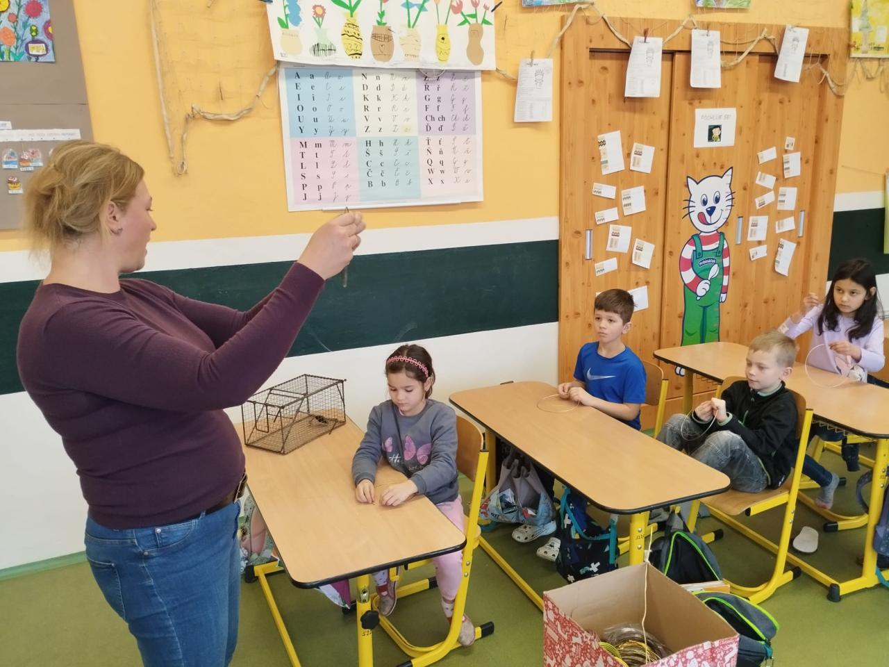 Ve čtvrtek k nám přijela Petra Mternová a žákům 1. a 2. třídy pověděla, co dříve dělali dráteníci a ukázala některé jejich práce. Poté si sami mohli vyzkoušet práci s drátky a každý si vyrobil krásný lapač smů či ozdobil kamínek.