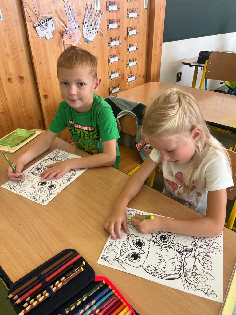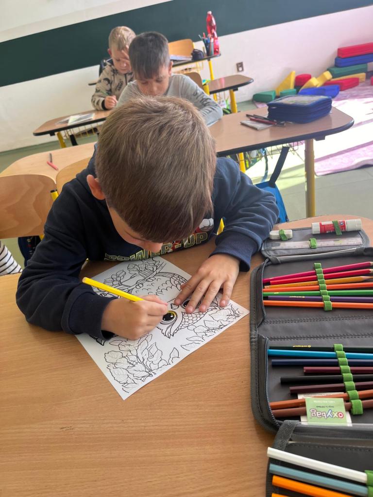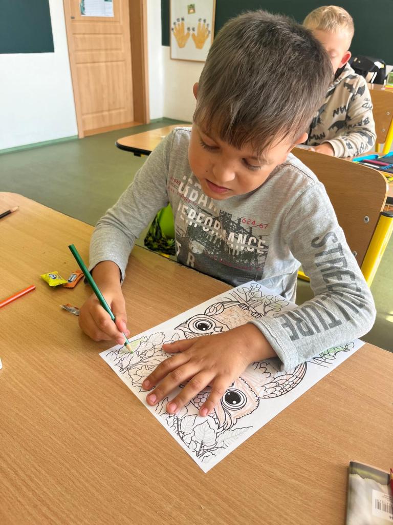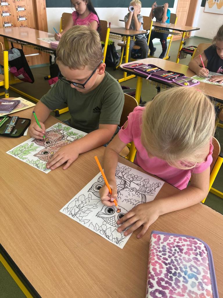 V úvodu dne se žáci dozvěděli základní informace o sovách, následně plnili sovičkové úkoly a nechyběla ani pohádka o sovách. Celý den je při plnění provázela pomocnice a třídní maskot- sovička :-)