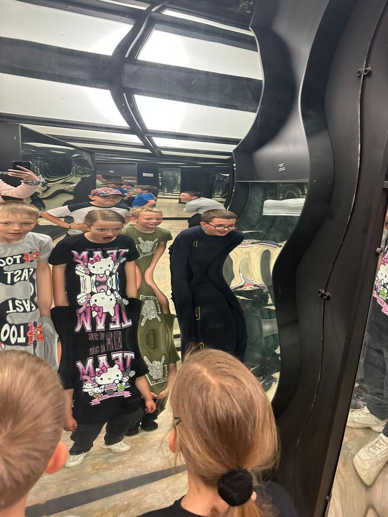Navštívili jsme přírodní bludiště s mnoha zajímavými zákoutími a také zrcadlovou obrazárnu, kde lomená zrcadla proměňovala postavy dětí k nepoznání.
