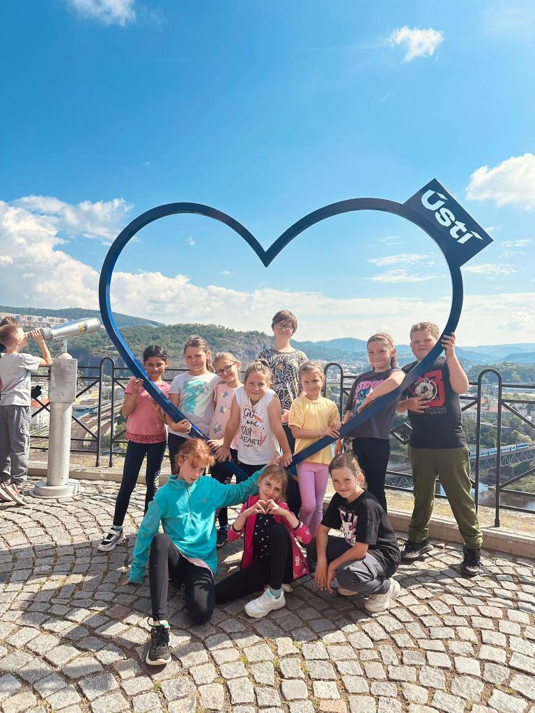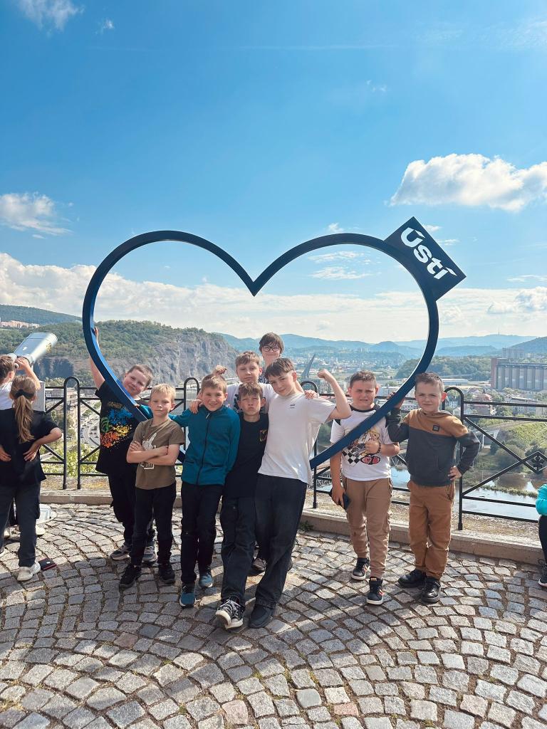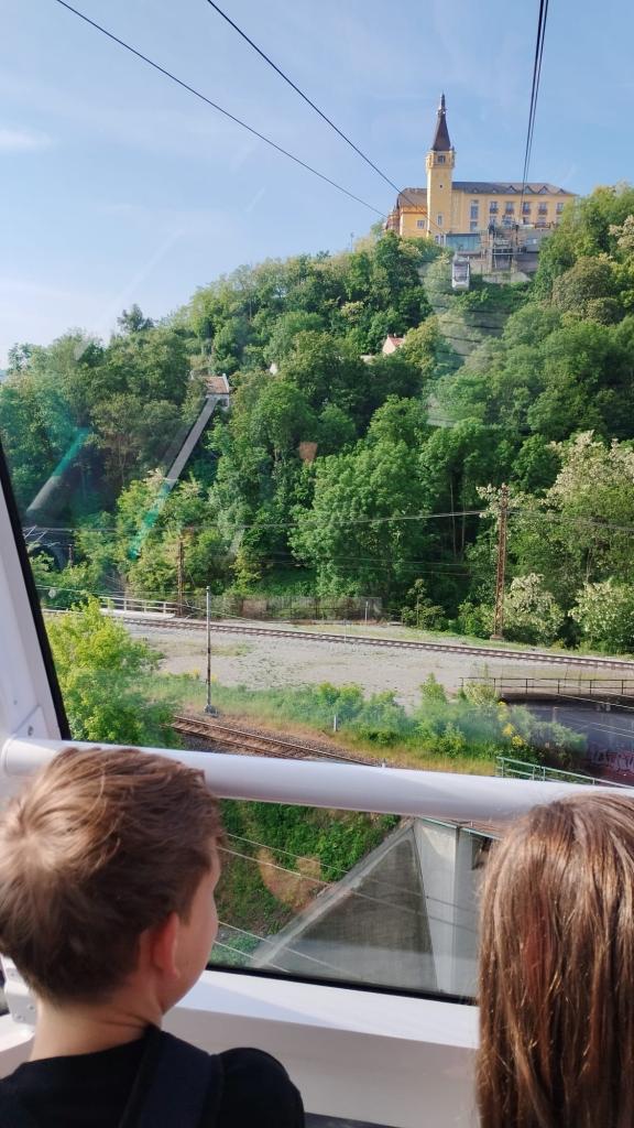 Naši cestu jsme zahájili vlakem z Čížkovic. Z hlavního nádraží v Ústí nad Labem jsme se přesunuli do nákupního centra Forum, odkud jsme vyjeli kabinovou lanovkou na vrch Větruše.