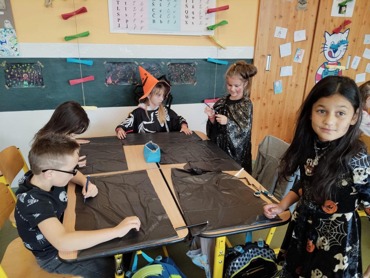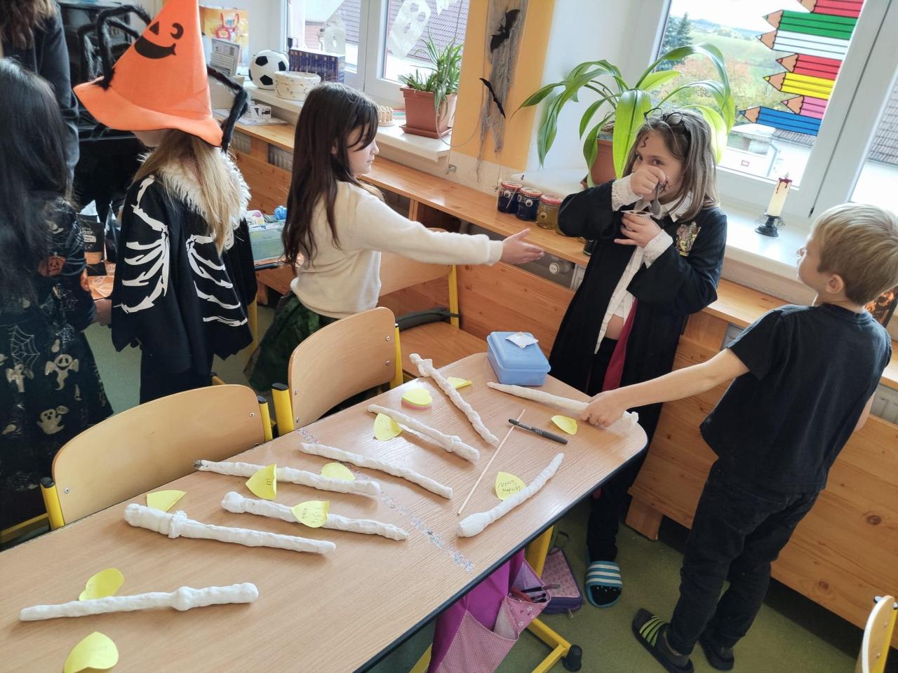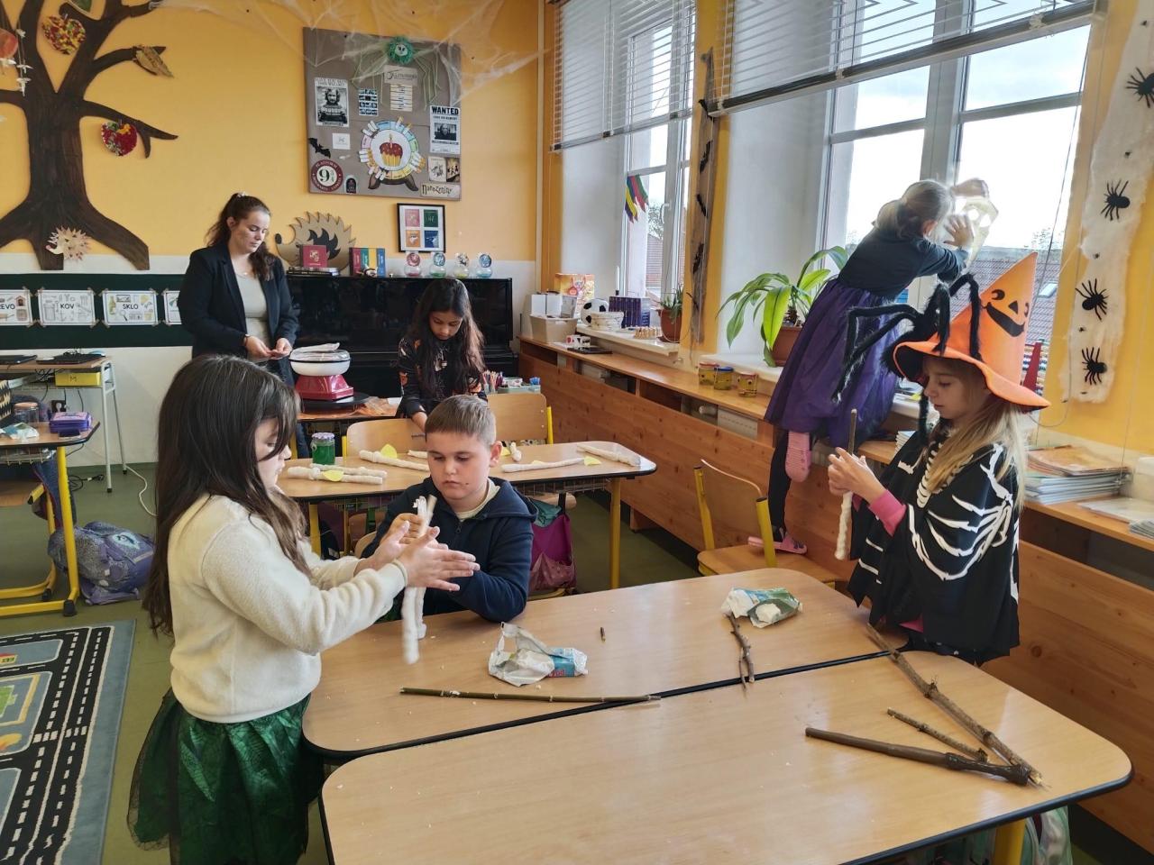 Měli jsme i spoustu tvoření, kdy si žáci vyrobili čarodějnickou hůlku, připravili si strašidelný lektvar, vytvořili výzdobu do oken z igelitových pytlů a také jsme vyfotili vtipné obličeje, které vystavíme do sklenic na okno.